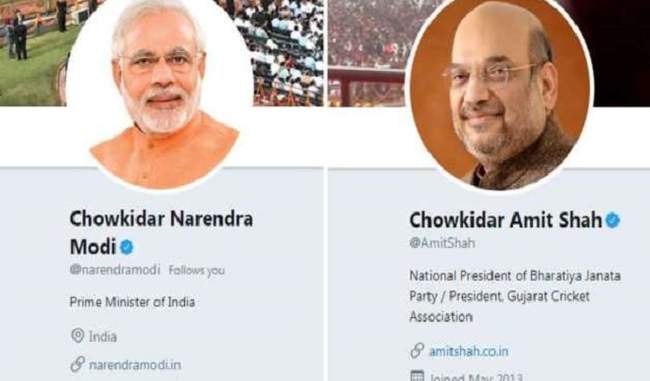 নির্বাচন এলে স্লোগান আর কিছু শব্দের ব্যবহার খুব বেড়ে যায়। এই নির্বাচনে কয়েকদিন ধরে ‘মোদি হ্যায় তো মুমকিন হ্যায়’ স্লোগানটা নিজের পায়ে দাঁড়ানোর মতো শক্তি পাওয়ার আগেই ‘ম্যায় ভি চৌকিদার’ স্লোগানটা এবার ভারতের নির্বাচন মঞ্চে ফিট হয়ে গেছে। বলা যায় হিট হয়ে গেছে। এর পেছনে বিজেপির প্রধান প্রতিপক্ষ কংগ্রেস বা রাহুল গান্ধী দায়ী। নরেন্দ্র মোদি নিজেকে চৌকিদার বলছেন শুনে রাহুল গান্ধী বলতে শুরু করলেন ‘চৌকিদার চোর হ্যায়’। তারপর উনি ভাষণ দিতে মঞ্চে উঠেই ভাষণ দেওয়ার ফাঁকে ফাঁকে মঞ্চ থেকেই আওয়াজ দিতে শুরু করলেন ‘চৌকিদার’। তারপর আঙুল তাক করলেন শ্রোতা ও সমর্থকদের দিকে। আওয়াজ উঠল ‘চোর হ্যায়’। এই ব্যাপারটা যখন জমে উঠেছে ঠিক তখনই এসে গেল ‘ম্যায় ভি চৌকিদার’ স্লোগান।